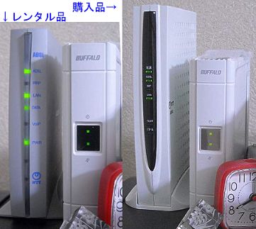 レンタル品はIP電話機能も付いた製品でしたけど、私には用がないのでIP電話機能のないシンプルな製品を選びました。機能のシンプルな製品の方が大きな筐体サイズなのは解せませんが…(放熱改善のため? 写真で隣にあるNASと比較すると高さの違いが分かります)。