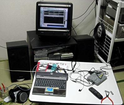 とはいえ、困ったのはディスプレイと本体を繋ぐフレキ基板を傷つけてしまったこと。普通のリード線で繋がれているならともかく、フレキ基板の断線を直すのはムリ。外部モニターを持っていなかったので、とりあえずダウンスキャン・コンバータでテレビに繋いでみたら画面が出せたので、異常個所がケーブルだけなのを確認できましたが、XGA解像度では文字がまともに読めず、日常作業はできません。ZOOM機能を使えば読めるものの、スクロールが必須で作業になりません。それにコンバータの応答のせいなのかマウスの応答にタイムラグがあり、その面でも実用になりません。