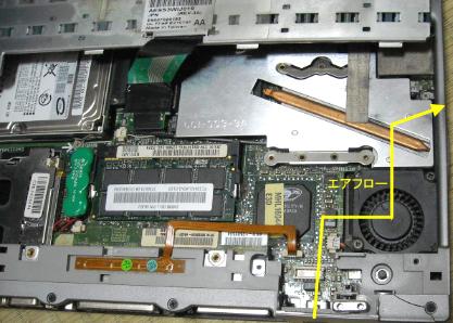 それでも、当初の目的を達成すべく、改めてバラし方の書かれた文書を読み直して続行してみたところ、あっさり分解できました。キーボード奥のベゼルから外していけばLCDパネルも容易に外せて、ファン周りにも簡単にアクセスできたのでした(最初に分解方法を調べればよかったのに、順番が逆だよなぁ…。我ながらアホさ加減に呆れる)。