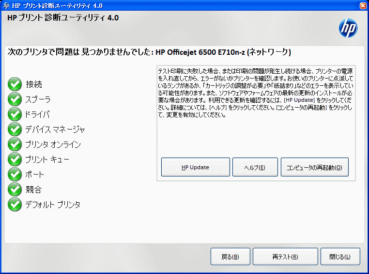 とまぁ、この件を書くために画面キャプチャをしようと、たった今(2011-02-15 22:25)HP Updateをしてみたら「HP プリンタ診断ツール」がバージョンアップされたよという通知が出ました。一応機能することもあるんだね…。