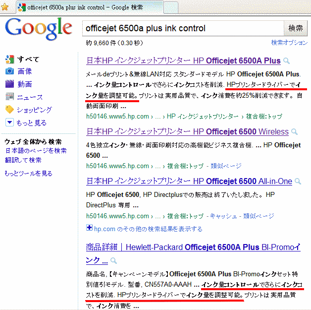 hp社は問題を軽く考えすぎています。なぜなら、自社サイトのページから記述を消しても、販売店(実店舗/Web店舗含め)が商品を販売する際の説明文やPOPには、発表当時の情報を基にした「インク量コントロール」の機能が謳われ続けており、それによってだまされる消費者がまだまだ生まれるのですから。