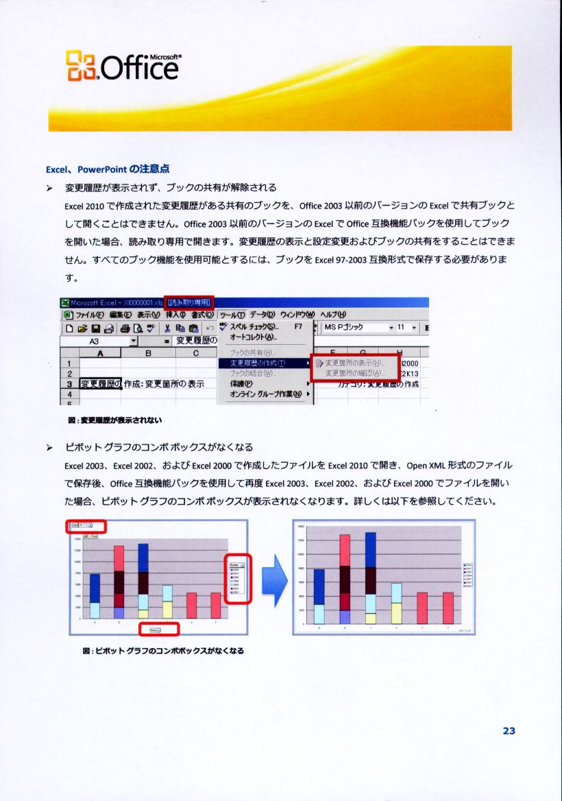 実際に起こる不具合(2件)の説明や、関連リンクは、[2009-12-13] Excel 2003での画面表示に問題発生の末尾の一覧に追加しておいたのでそちらを参照して下さい。