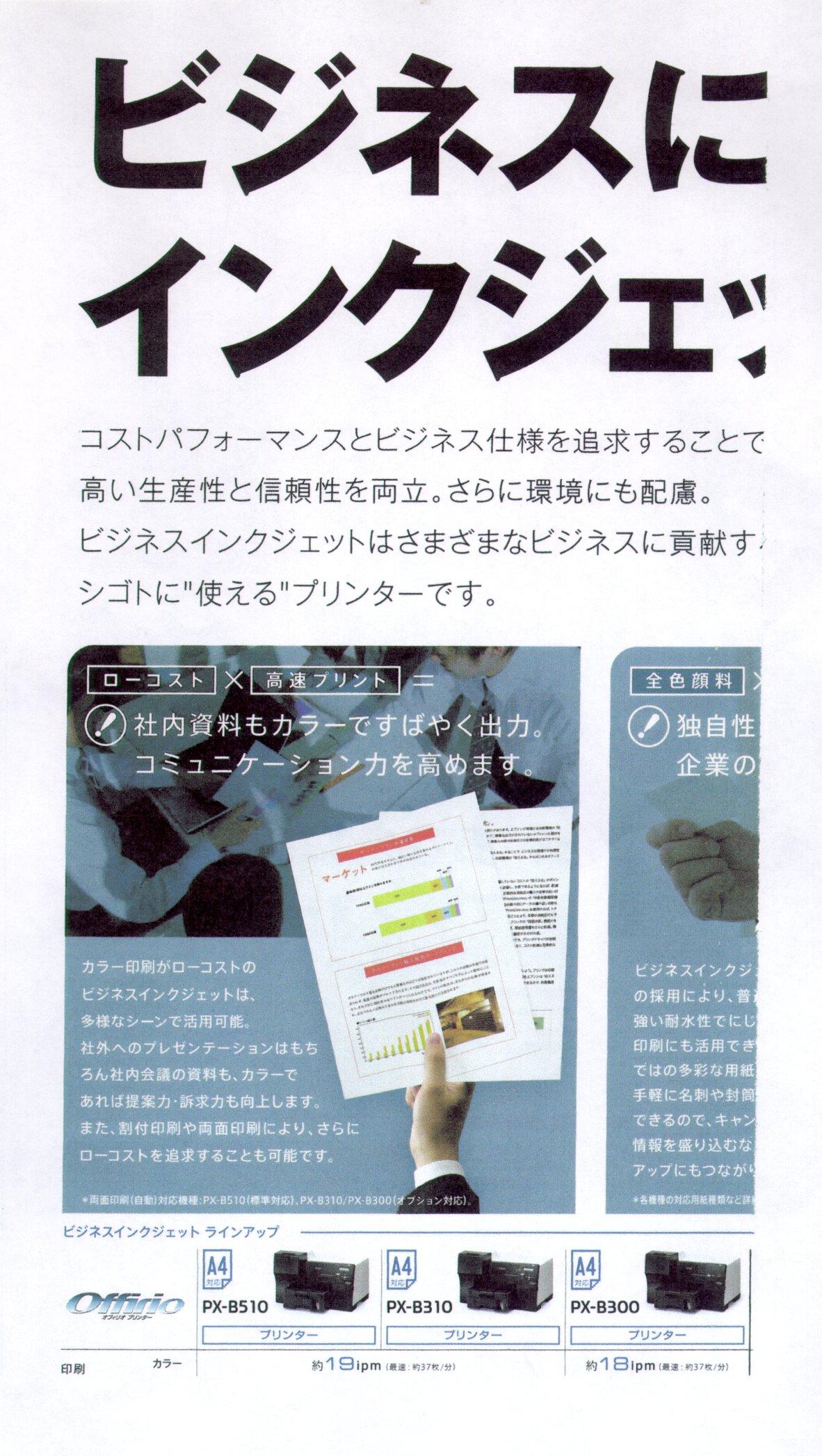2011-03-20に、Canon MX883での店頭テストができたので追加しました。但しスキャンしたものは別原稿です。またB5サイズのADFスキャンテストをしたかったので、適当に幅を狭めた原稿(カタログを狭くちぎったもの)を利用し、B5用紙設定でA4用紙にコピーしました。