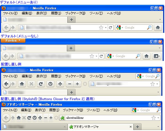 Firefox 4.0の概観 デフォルトとカスタマイズ後 (Clickで元のサイズ)