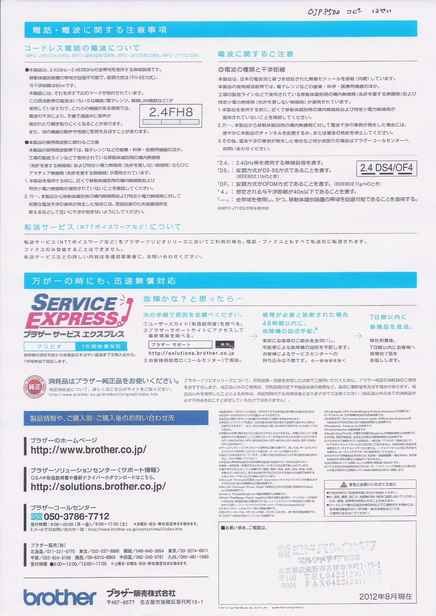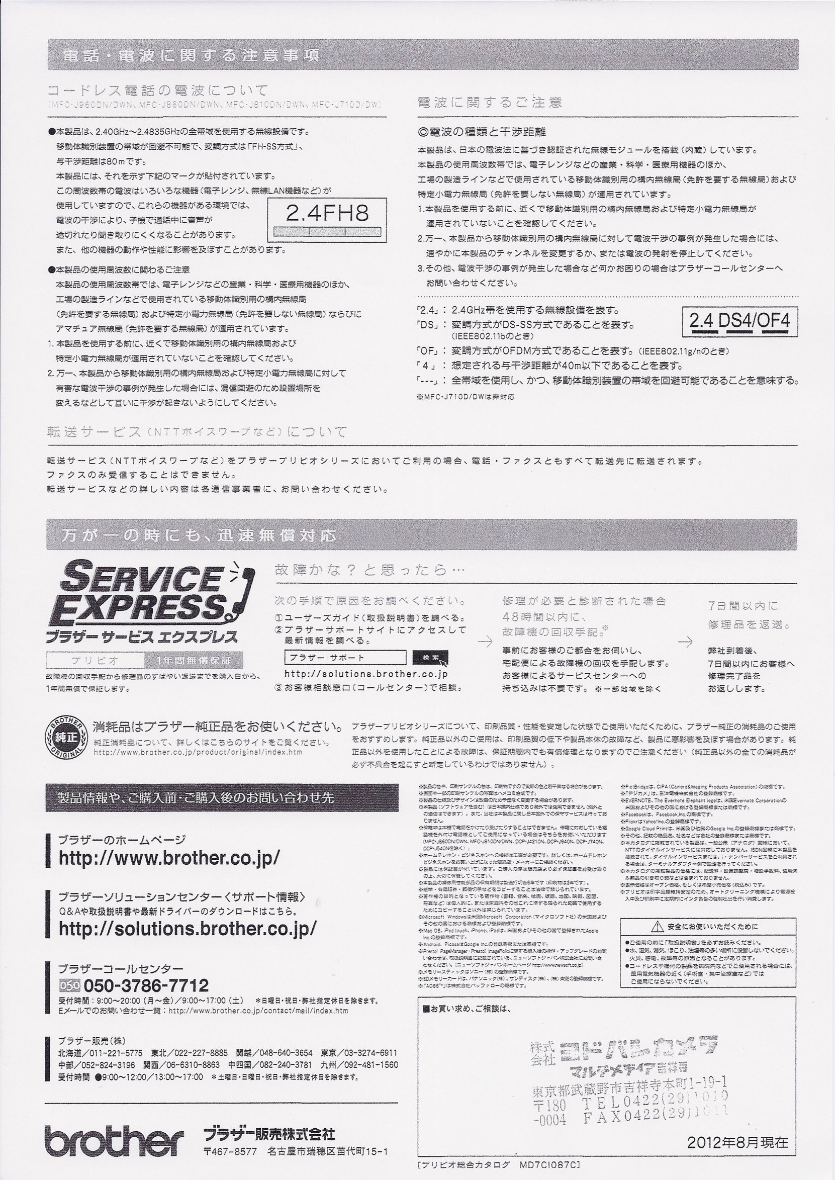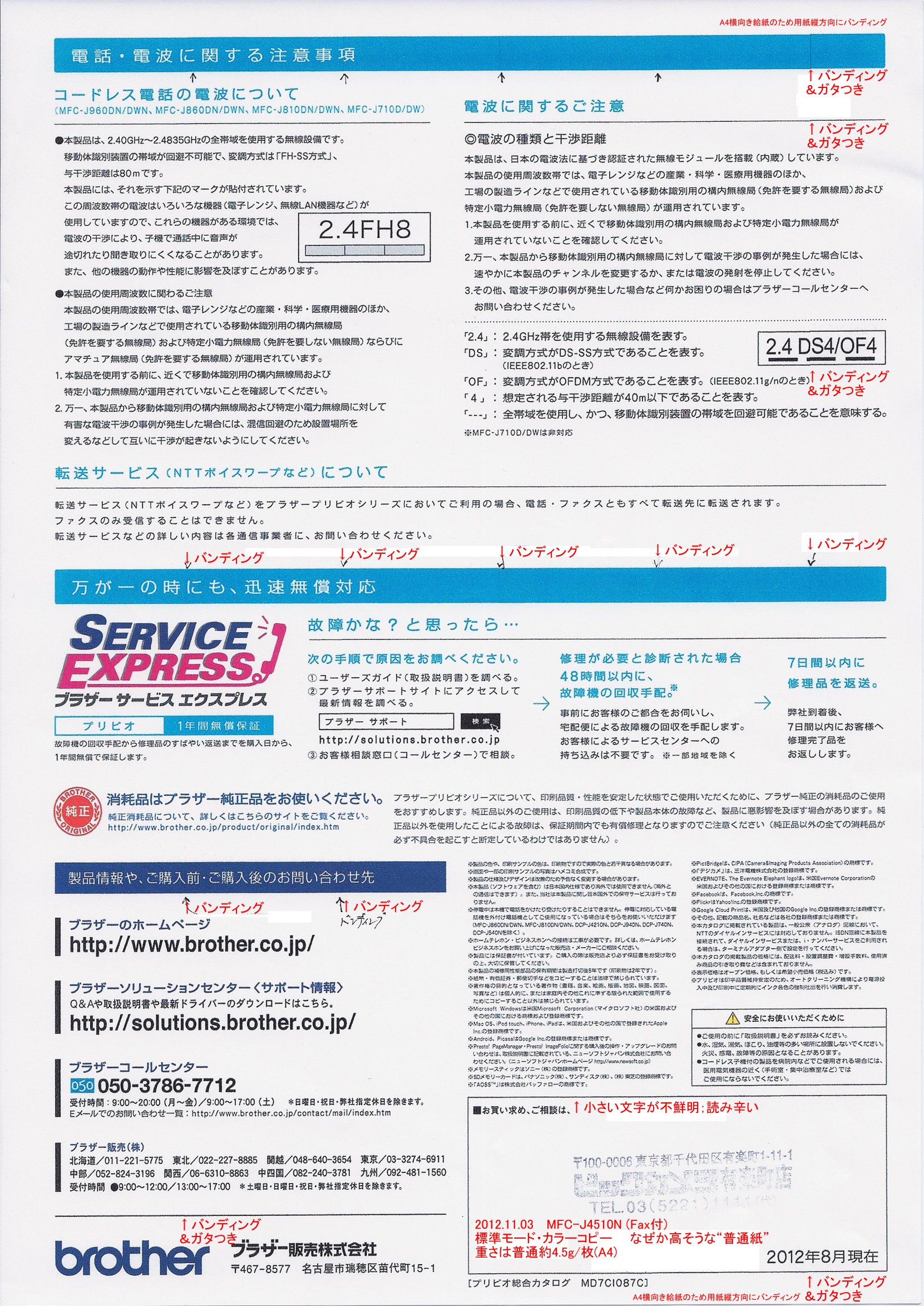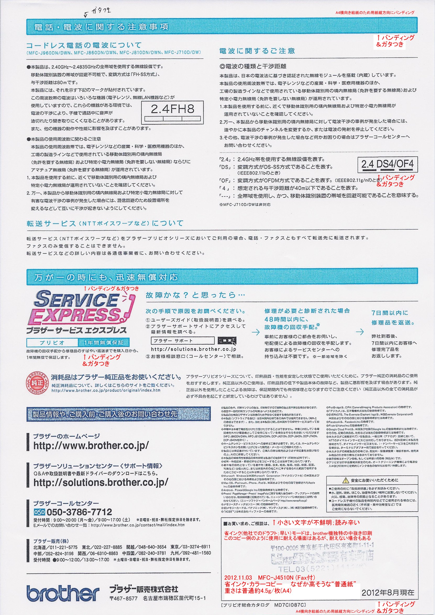 前回と同じ趣向で、A3も印刷できるbrotherのMFC-J4510Nで店頭テストしました(有楽町の別イベントに寄ったついでに)。原稿はカタログの裏表紙、ガラス面置き。