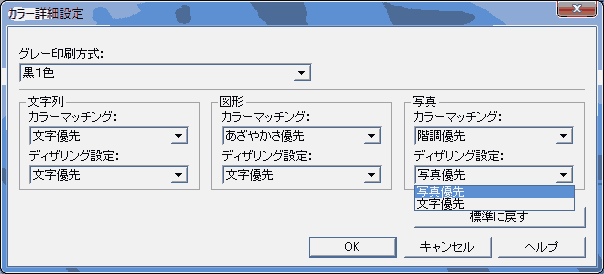 もちろん網点であっても解像度設定のグラデーションを画質優先にすると網点処理がさらに緻密になるため、それはそれで十分綺麗にはなるのですが、写真をきれいに印刷したいという意図がある際に選ぶであろう自動や写真優先ではなく、感覚に反する文字優先を選ぶ方が、より写真らしい結果が得られるというのは奇妙な気がします。