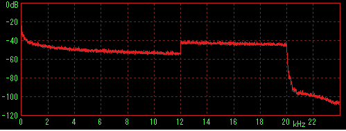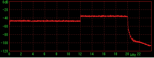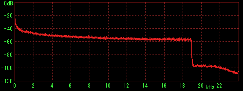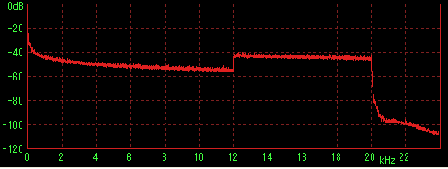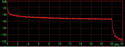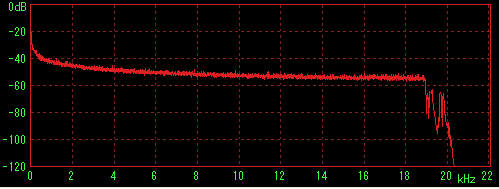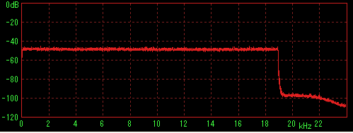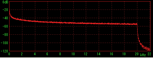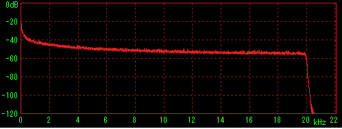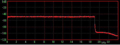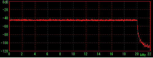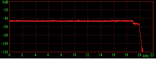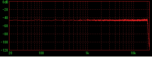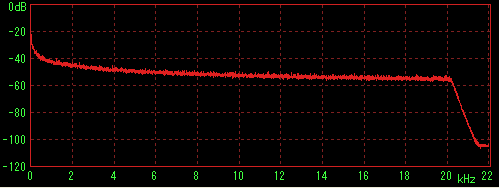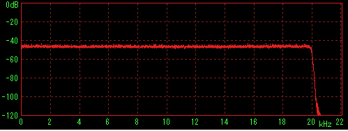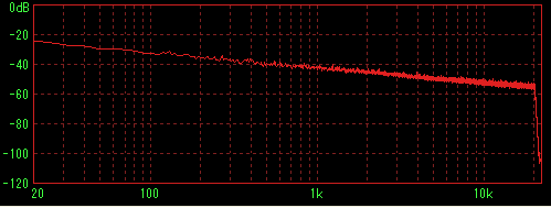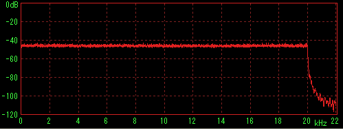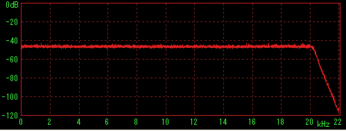 LilithやWMPなどで再生してステレオミキサー経由でWaveSpectraで特性を見た場合に内蔵音源の特性(2kHz前後に若干のうねり)が出てしまうことが判明したため、ファイルデータを直接計測すると思われる方法を採用。