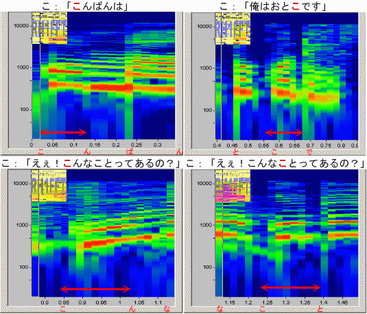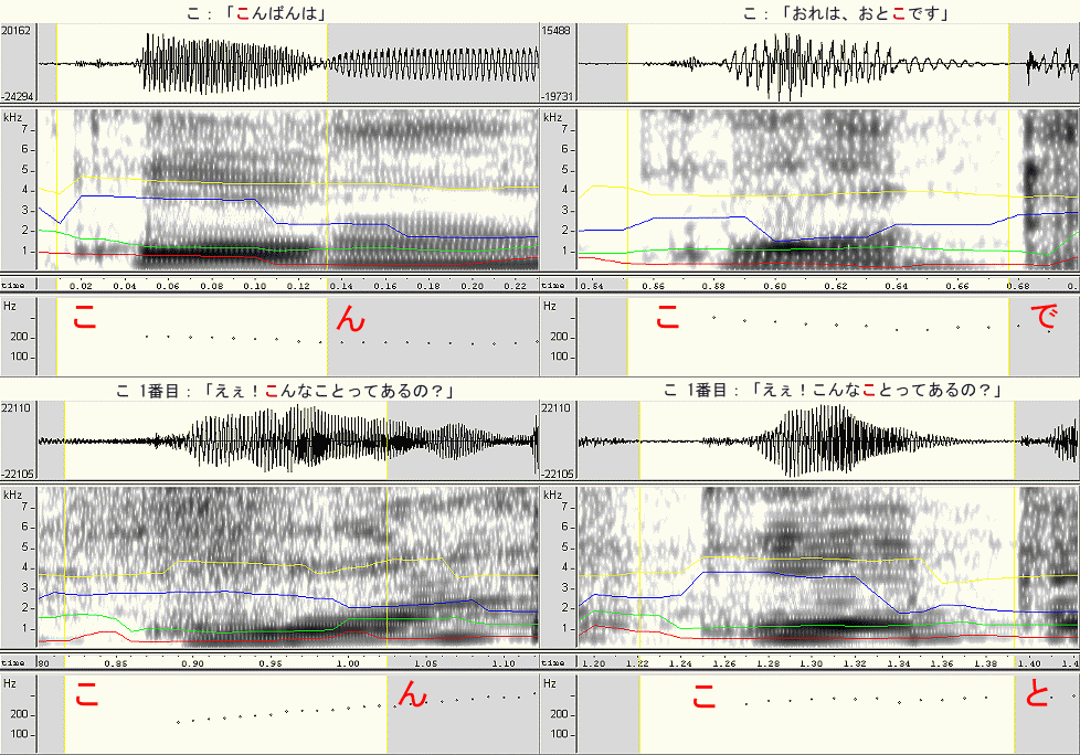 | 「こ」の比較 (時間幅は揃えてありません) |