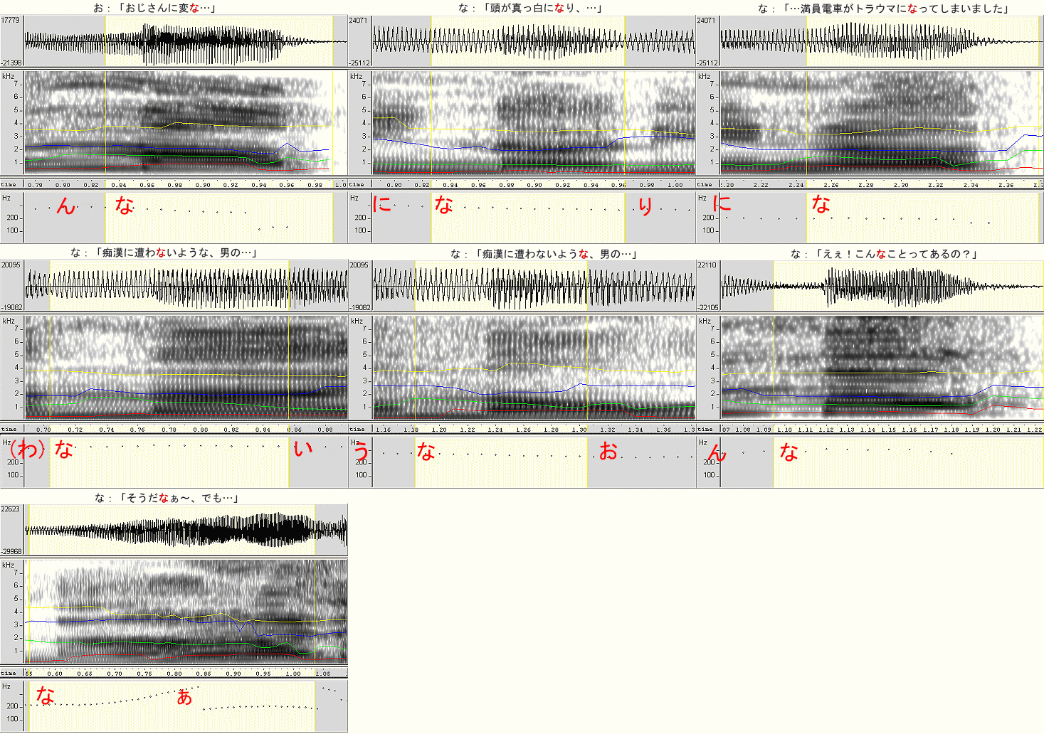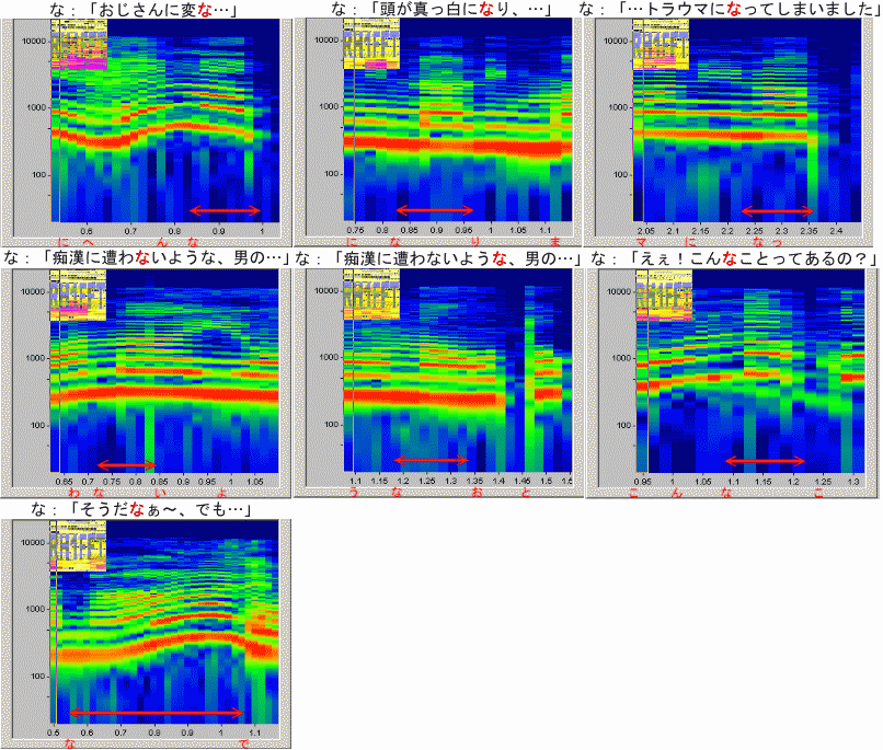 | 「な」の比較 (時間幅は揃えてありません;特に3-7) |